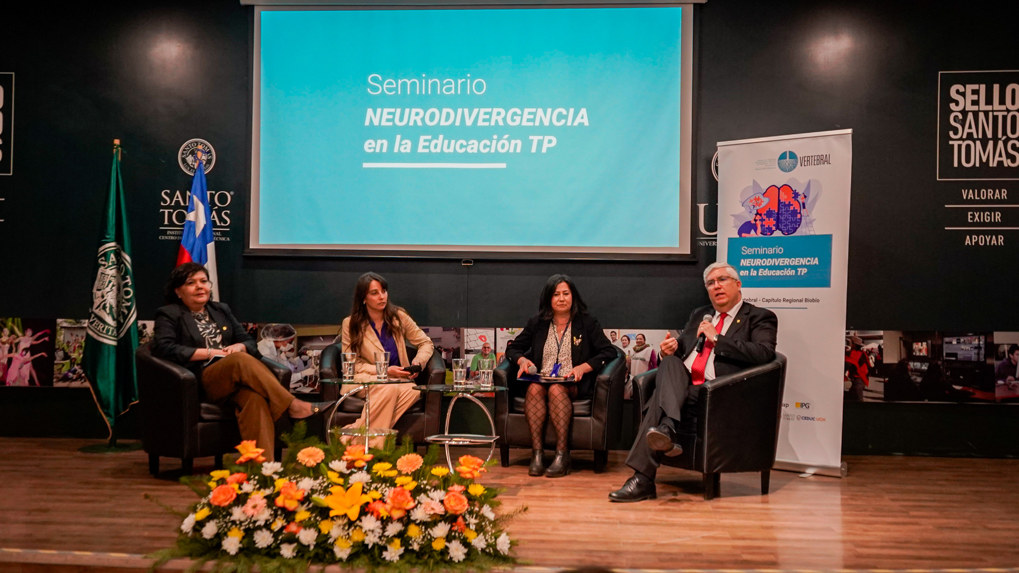 Además, se desarrolló un panel de conversación moderado por el rector del Instituto Profesional Virginio Gómez, que contó con la participación de Marcela Pérez Poquet, jefa del Departamento de Apoyo al Estudiante; Natalia Guede Estrada, directora del Centro de Aprendizaje de Santo Tomás; y Paula Torres Dubbot, coordinadora regional de Educación Superior de la Secretaría Regional Ministerial de Educación del Biobío.