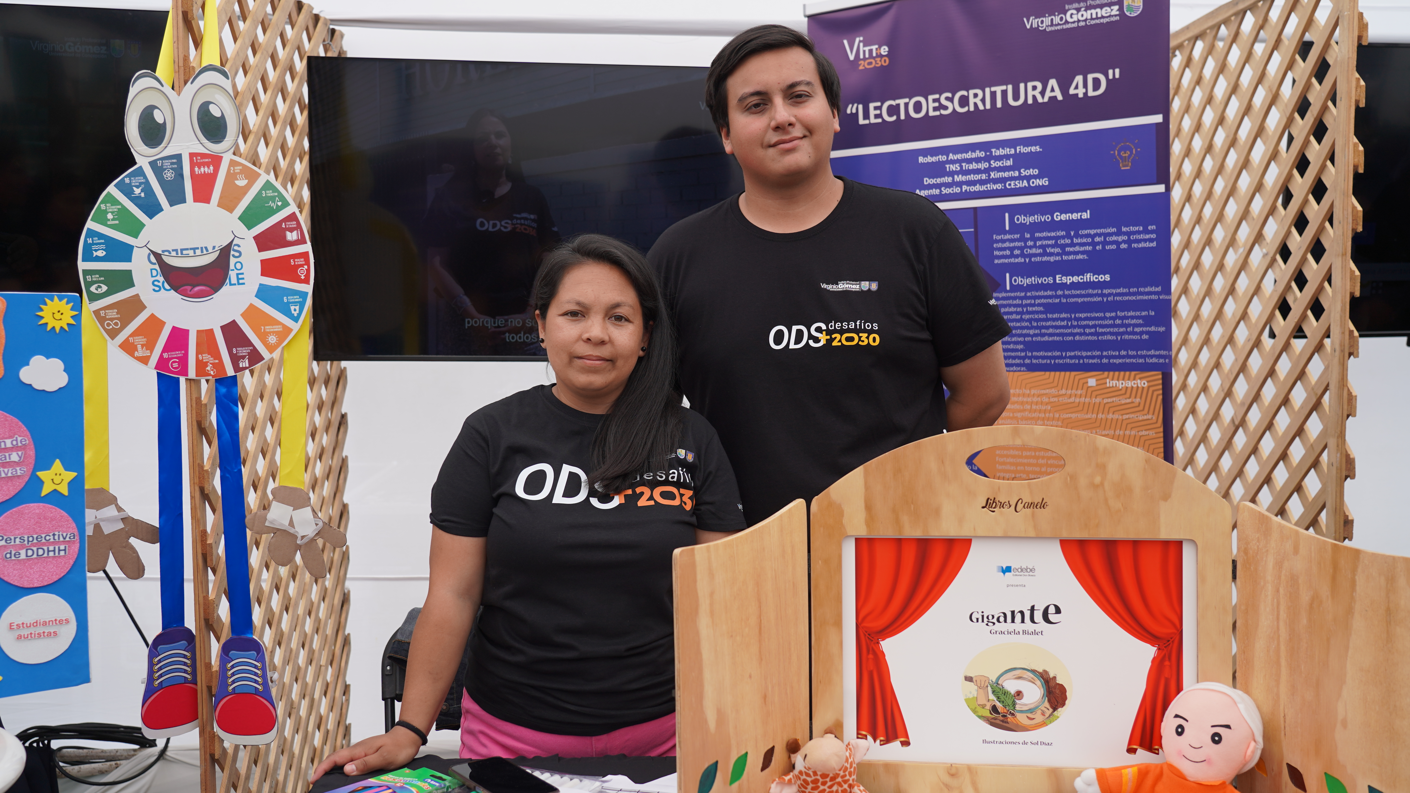 El equipo ganador fue “Lectoescritura 4D”, iniciativa desarrollada por los estudiantes Roberto Avendaño y Tabita Flores, de la carrera Técnico en Trabajo Social de la sede Chillán, quienes estuvieron acompañados por la docente Ximena Soto. El proyecto se enfocó en reencantar a niños y niñas con el proceso de lectoescritura mediante el uso de herramientas innovadoras y tecnológicas. En detalle, permite que los niños creen sus propios cuentos utilizando un paño multisensorial, el cual puede transformarse en imágenes con realidad aumentada, apoyadas por inteligencia artificial a través de una aplicación creada por los mismos estudiantes.